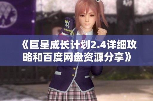 在当今的游戏市场中,《巨星成长计划2.4》无疑是一款备受瞩目的模拟经营类游戏。玩家在游戏中扮演艺人的经纪人,培养和管理自己的明星,经历从默默无闻到名声大噪的全过程。为了帮助各位玩家更加顺利地进行游戏,我们为大家准备了一份详细攻略以及丰富的百度网盘资源分享,通过科学的运营策略,我们一定能够让我们的明星迅速崛起。