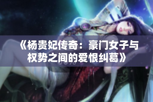 《杨贵妃传奇:豪门女子与权势之间的爱恨纠葛》